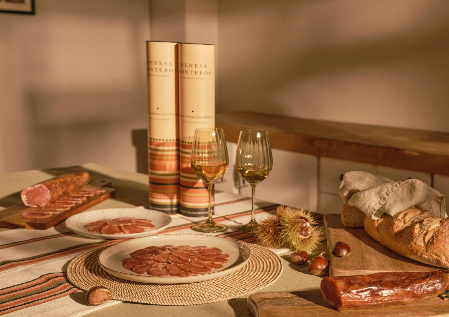 Nuestra dehesa es rica en castaños, y durante más de un mes, el anterior a los meses de alimentación exclusiva de bellota, nuestros cerdos se sacian de castañas en una premontanera única que aporta a la carne un dulzor especial y unos matices diferentes y extraordinarios.