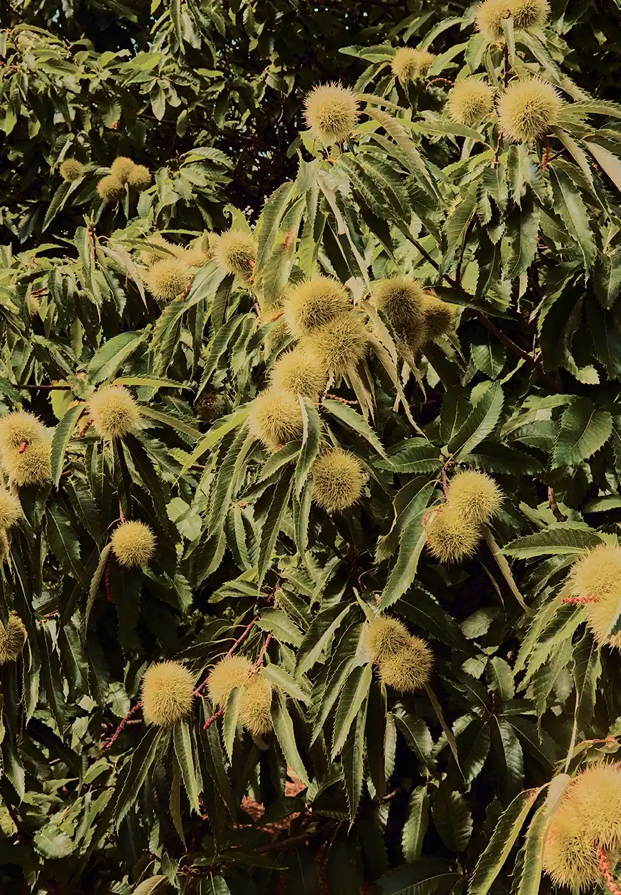 Nuestra dehesa es rica en castaños, y durante más de un mes, el anterior a los meses de alimentación exclusiva de bellota, nuestros cerdos se sacian de castañas en una premontanera única que aporta a la carne un dulzor especial y unos matices diferentes y extraordinarios.