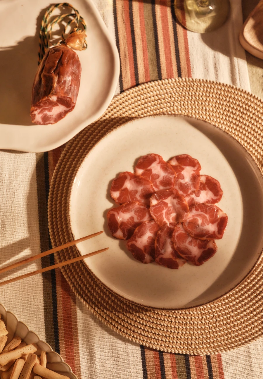 Nuestros cerdos son auténticos atletas, el accidentado relieve les obliga a realizar ejercicio continuo en su búsqueda de alimento, lo que favorece al bienestar animal y a la penetración del oleico intramuscularmente. La carne de nuestros jamones ibéricos alcanza una calidad y unos niveles de infiltración inigualables.